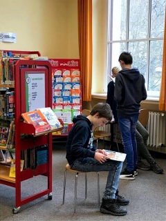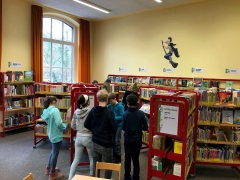 Die übrige Zeit verbrachte die 6b, die sich während der gesamten Zeit vorbildlich benahm, mit der Suche nach Büchern und anderen Medien, die man sich zum Abschluss auslieh, sodass dieser Besuch sicherlich nicht der letzte war.