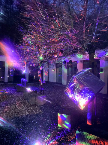 Denn zahlreiche Installationen der Lichterspiele spielten nicht nur mit dem Licht, sondern auch mit dem Schatten. Die Schlange derjenigen, die sich diese besondere Vernissage am Freitag, den 11.03.2022 um 19:00 Uhr bei einbrechender Dunkelheit ansehen wollte, erstreckte sich über den gesamten Bürgersteig bis hin zur Sporthalle der Schule, um Einlass ins PZ zu erhalten und die ersten Stationen zu sehen, zu hören und zu erleben.