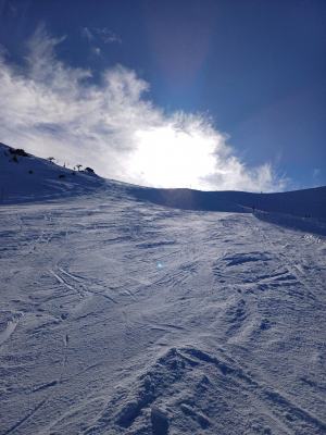 Am nächsten Morgen wurden wir um spätestens 7:00 Uhr von den Lehrerinnen und Lehrern geweckt. Danach blieb noch eine halbe Stunde Vorbereitungszeit und dann gab es ein vielfältiges und stärkendes Frühstück. In aufgeregter Vorfreude ging es daraufhin wieder für etwa eine halbe Stunde auf die Zimmer. Skikleidung, Sonnencreme etc. wurden angelegt und gespannt begaben wir uns sodann in den Skikeller, um unsere Skischuhe hinauszuholen. Dann konnte es schon losgehen. Mit dem Busfahrer fuhren wir in das nahegelegene Skigebiet Söllereck. Hier angekommen wechselten wir von unseren Schuhen in die etwas unbequemeren Skischuhe. Für die Anfänger von uns eine ulkige Art zu gehen, doch schneller als gedacht hatten sie den Dreh raus und es ging für alle in Gruppen mit Hilfe einer Gondel auf die Piste. Dort legten die Beginner zum ersten Mal in ihrem Leben Skier an und die Könner fuhren eine Abfahrt nach der anderen. Das Wetter war fantastisch, trotzdem mussten wir leider auf Kunstschnee fahren. Vor allem bei den Startern ereigneten sich besonders am ersten Tag viele, glücklicherweise harmlose, Stürze. Dennoch bereitete es allen großen Spaß. Ungefähr vier Stunden lagen zwischen Beginn eines jeden Skitages und unserer Mittagspause, dabei winkte ein kräftigendes Essen auf einer Skihütte. Dort fand ein reger Austausch an Erlebnissen und Erfahrungen statt und man konnte seine Energiespeicher eine Stunde lang wieder auffüllen. Gesättigt fuhren wir erneut in unsere Bereiche, entweder mit der Gondel oder mittels der Talabfahrt. Nach weiteren zwei Stunden traten wir wieder den Heimweg an und dann begann das Wettrennen nach einer freien Dusche. Einige von uns machten es sich auf ihren Zimmern gemütlich, andere besuchten andere Zimmer und so ruhten wir uns alle von der Anstrengung am Vor- und Nachmittag aus. Am frühen Abend genossen wir unser Abendessen, wieder äußerst bunt und stärkend. Dann verkündeten die Lehrer, dass wir nach dem Abendessen noch eine kleine Wanderung mit Fackeln unternähmen und wir bis dahin noch ein wenig Freizeit hätten. Schlussendlich vertrieben wir uns die Zeit vom Abendessen bis zur Wanderung mit Gesprächen auf den Zimmern, Duschgängen, Musik oder Anrufen bei den Eltern. Danach ging es für uns in unsere dicken Winterjacken und eine Runde durch den umliegenden Wald startete. In stimmungsvoller Atmosphäre zündeten wir die Fackeln an und wer wollte, durfte eine von ihnen tragen. In einem großen Zug liefen wir auf und ab und uns bot sich der Anblick eines wunderschönen Sternenhimmels. Erfrischt und nun doch schon sehr müde kamen wir nach etwa einer Stunde wieder an der Jugendherberge an. Dort ließen wir den Abend noch ruhig ausklingen und um 22:00 Uhr war Nachtruhe. Viel länger hielten die Meisten ohnehin nicht durch, zu positiv überwältigt und müde waren wir.