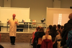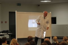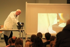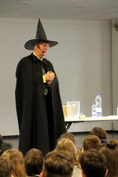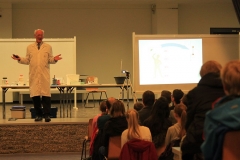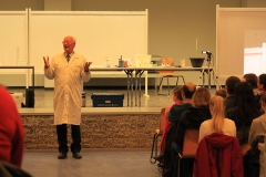 Naturwissenschaften sind trockener Stoff, richtig? Falsch! Mit den naturwissenschaftlichen Vorträgen von Dr. Heywang werden Chemie und Physik plötzlich spannend und machen neugierig. Ausgesprochen humorvoll bringt der pensionierte Chemiker aus Bergisch-Gladbach den Schülerinnen und Schülern physikalische und chemische Zusammenhänge näher. Meist stehen dabei viele ganz gewöhnliche Dinge, die uns täglich umgeben, im Mittelpunkt der Präsentationen. Dabei ist Gelächter und Staunen selbstverständlich, wenn Dr. Heywang mit witzigen Anekdoten und augenzwinkernden Anspielungen dennoch handfestes Wissen vermittelt.