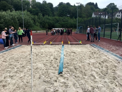 Bei zunächst eher durchwachsenem Wetter stellten sich die 5. bis 9. Klassen den Disziplinen 800m-Lauf, Zonenweitsprung, Zielwerfen, Medizinballweitstoß und der Wendesprintstaffel.