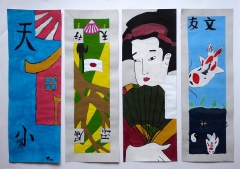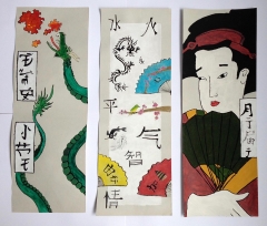Die praktischen Arbeiten, die anschließend im Kunstunterricht entstanden, zeigen, dass die Schüler durch das von Frau Dr. Keller wunderbar geleitete „richtige Sehen“ für „das Japanische“ sensibilisiert worden waren.