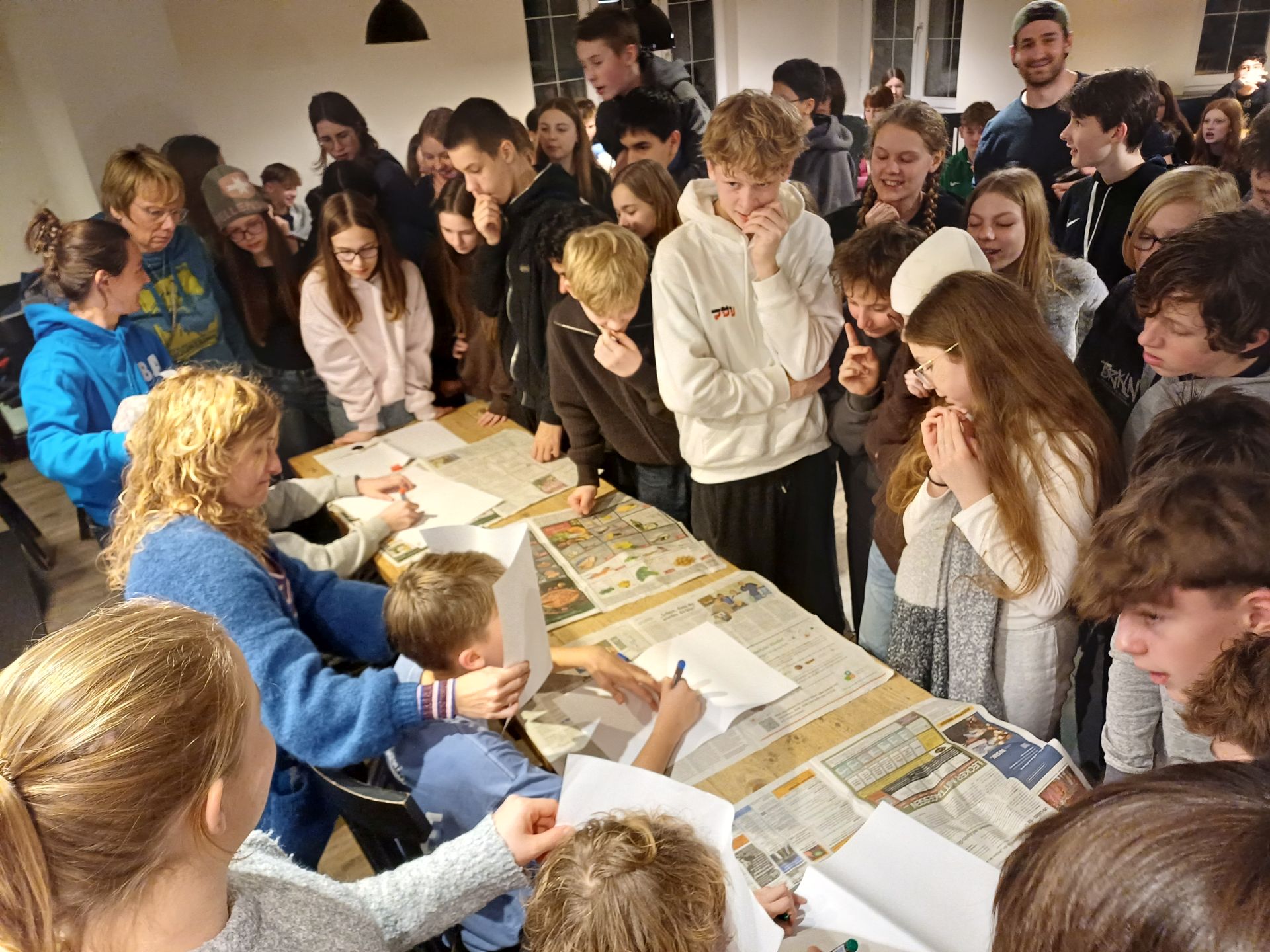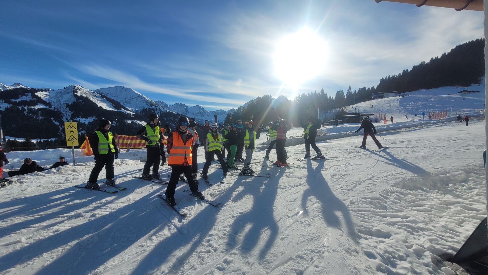 Mit dem Lied ‚Guten Morgen Sonnenschein‘, was von den Boxen der Lehrer durch das ganze Hostel tönte, sind wir in den ersten Skitag gestartet. Nach dem Frühstück ging es in den Bus mit unserer Skiausrüstung und dann ab nach Österreich. Auf der Piste durften die Anfänger dann den ersten Kontakt mit Skiern machen, während die Fortgeschritten schon die ersten Pisten fahren konnten. Mit knurrendem Magen ging es in die Gondeln und hoch auf die Hütte zum Mittagessen. Am Nachmittag sind alle nochmal gefahren und dann ging es auch schon relativ schnell zurück zum Hostel. Als alle geduscht hatten, gab es Abendessen und jeder konnte sich für eine Aktivität am Abend eintragen. Den Tag haben wir dann mit Kickern, Tischtennis, Karaoke oder Gemeinschaftsspielen ausklingen lassen.